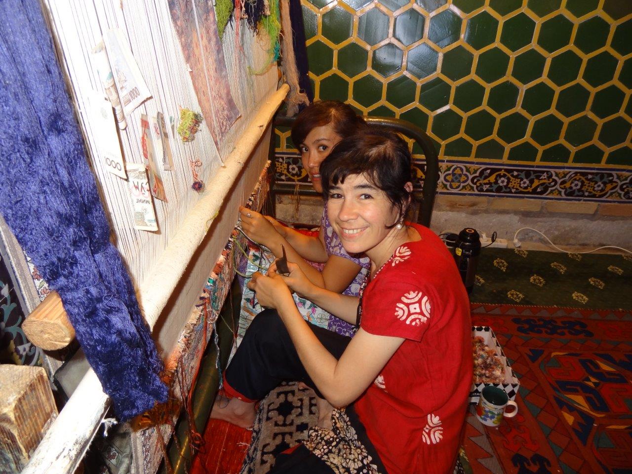 18.Week 4, Uzbekistan, local girl weaving, Samarqand